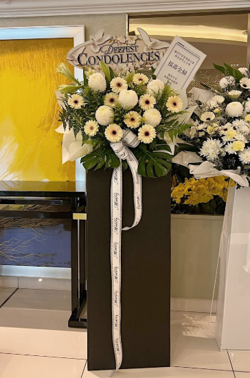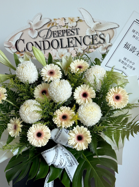 Condolences Flower Stand (Main Mum Ping Pong & White Gerbera)